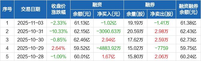 澜起科技:融资净偿还1.02亿元,融资余额61.13亿元(11-03)