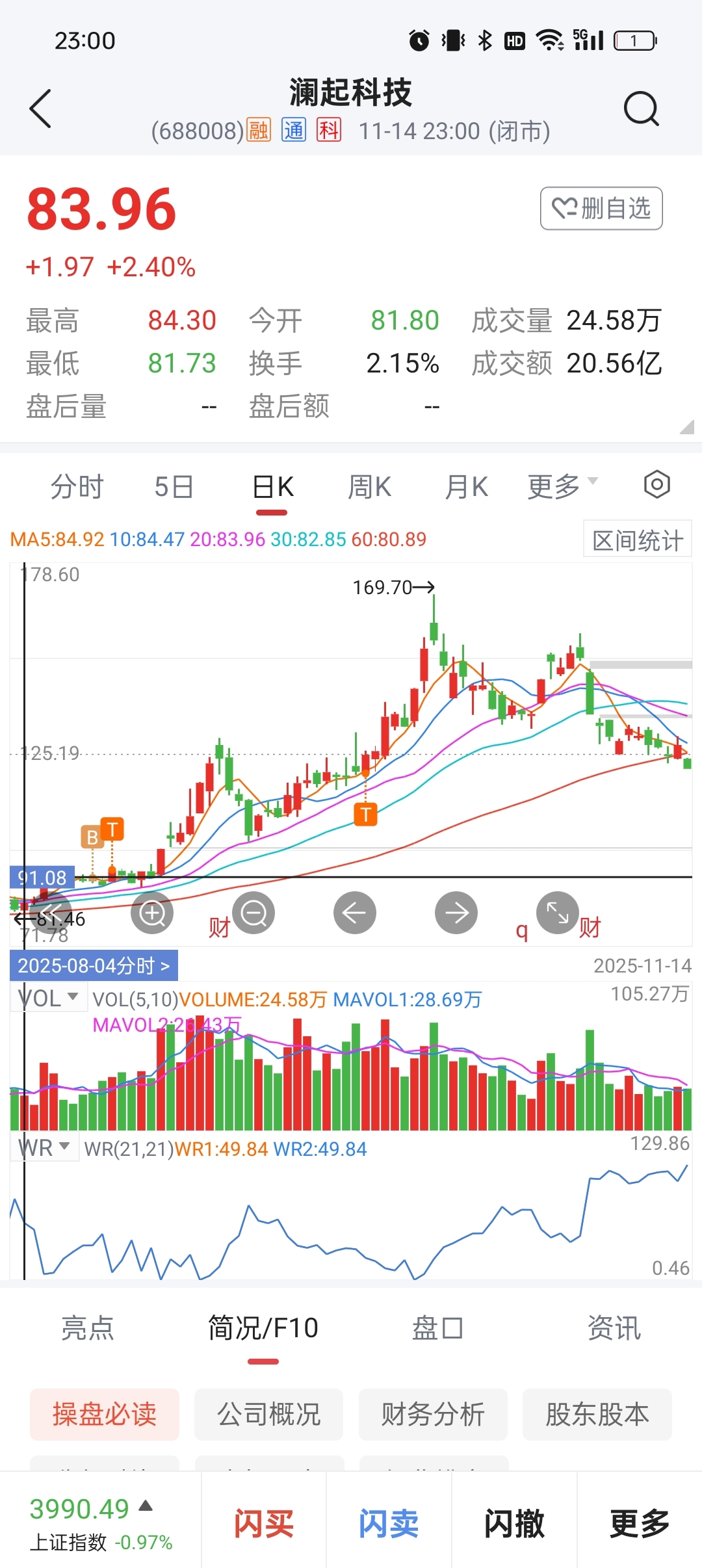 $澜起科技(SH688008)$ 主力,给你脸了,我就不卖,亏不完,根本亏不完,我在下面等你啊