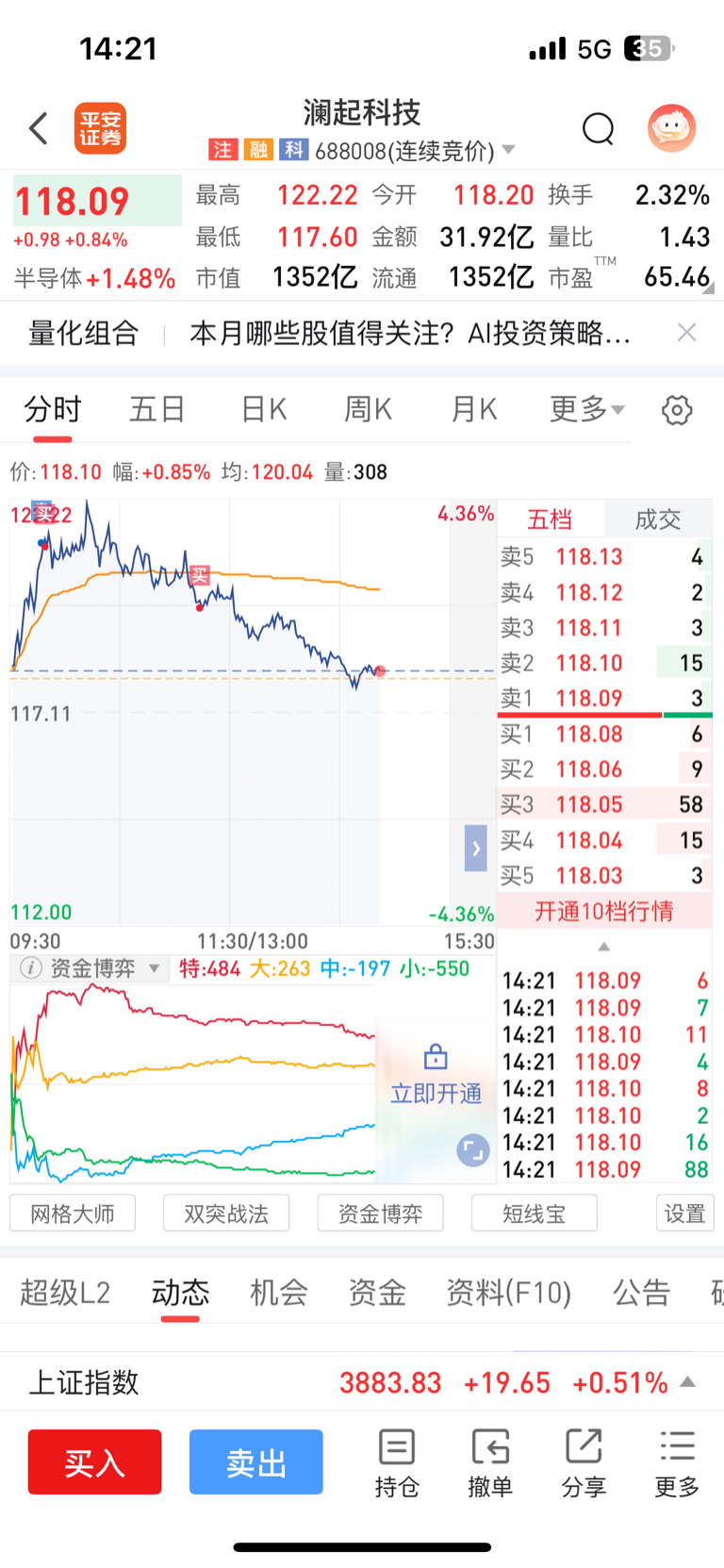 $澜起科技(SH688008)$ 早上卖了怕飞立马买回来了,下午补仓又被套,反正就是挨打