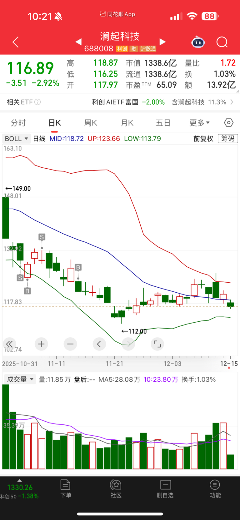 $澜起科技(SH688008)$ 短期不妙,单边向下走,准备先撤了