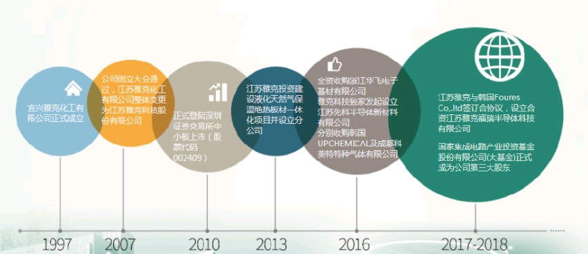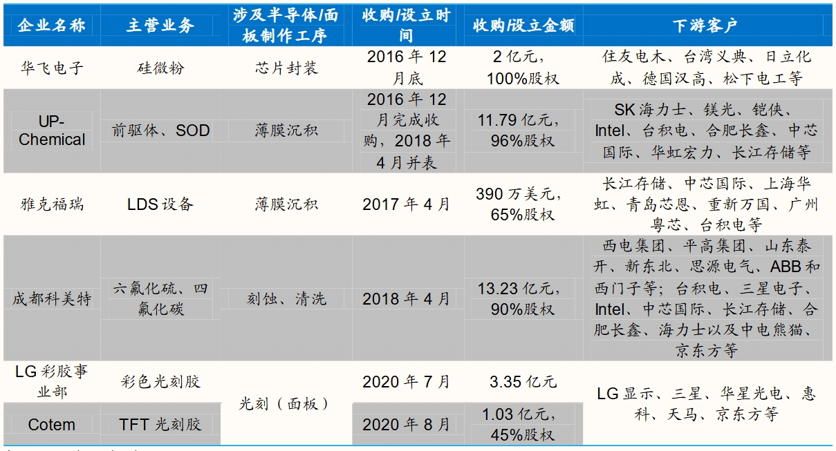 雅克科技通过收购韩国 Cotem 公司切入光刻胶领域,收购成都科美特进入电子特气领域,逐步构建起半导体材料平台型公司。