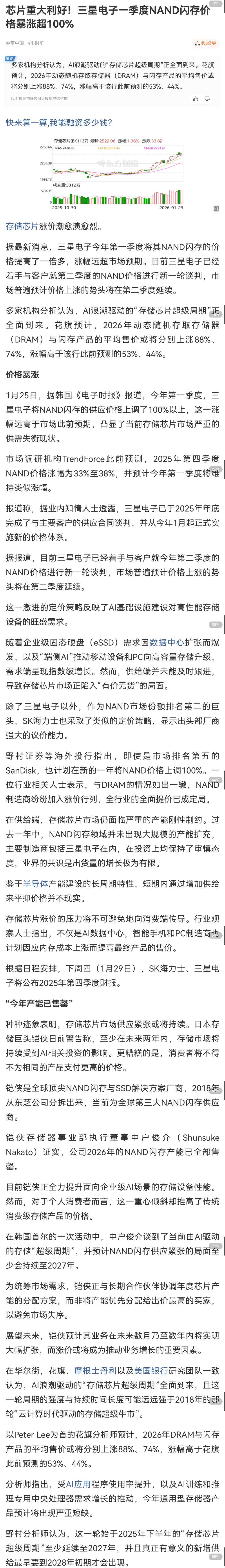 芯片重大利好!三星电子一季度NAND闪存价格暴涨超100%