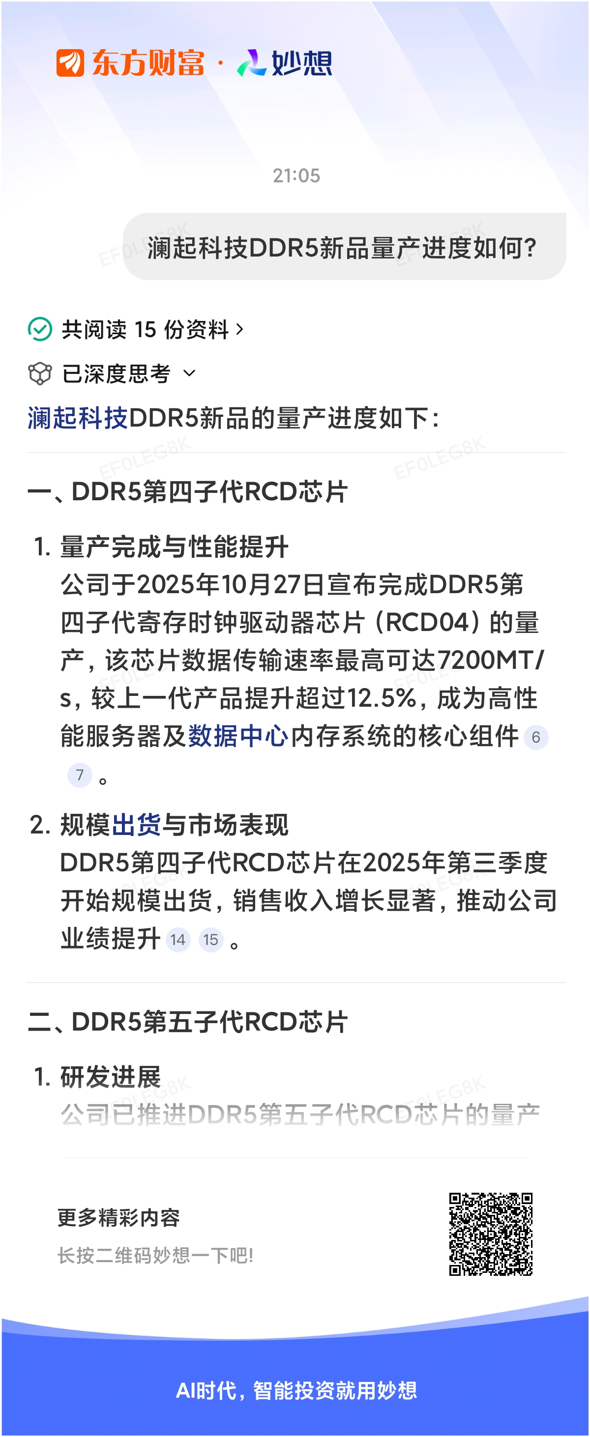 #@妙想,你怎么看?# 妙想一下:澜起科技DDR5新品量产进度如何?