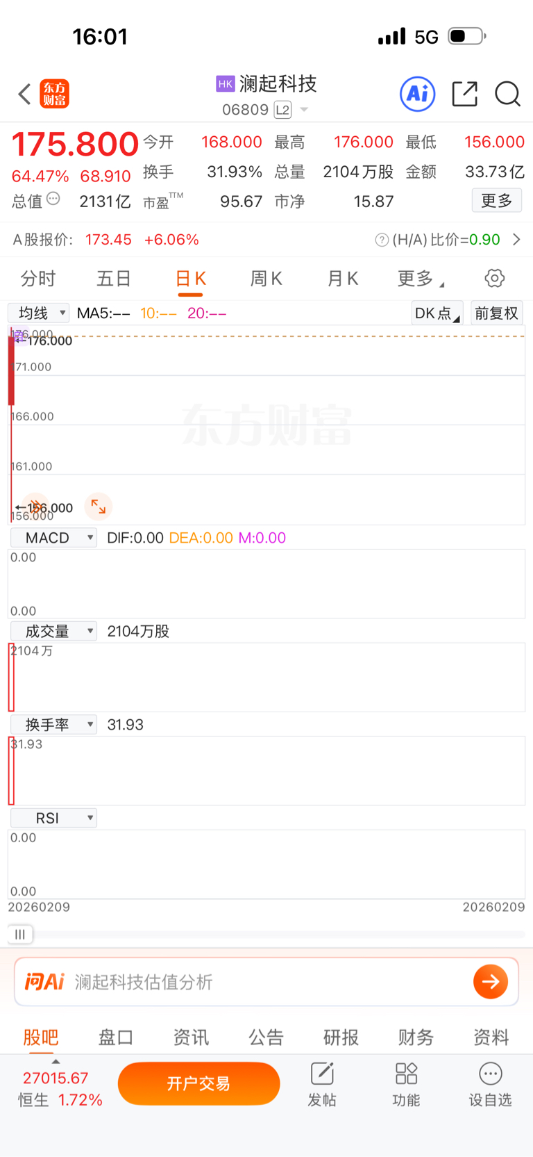 H股首日冲高至176港元,A股你明天继续加油加油加油哦!