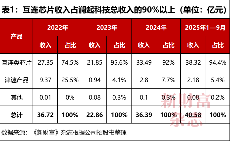 其客户构成也较稳固,2024年和2025年前三季度,前五大客户完全一致。客户A于2022年曾是其最大客户,为其收入贡献了9亿元,2023年跌出前五大客户行列,2025年前三季度以微弱优势位列第三,全年座次仍有可能发生变化。除客户A尚有少量津逮产品的需求,五大客户的收入全部来自互连芯片。