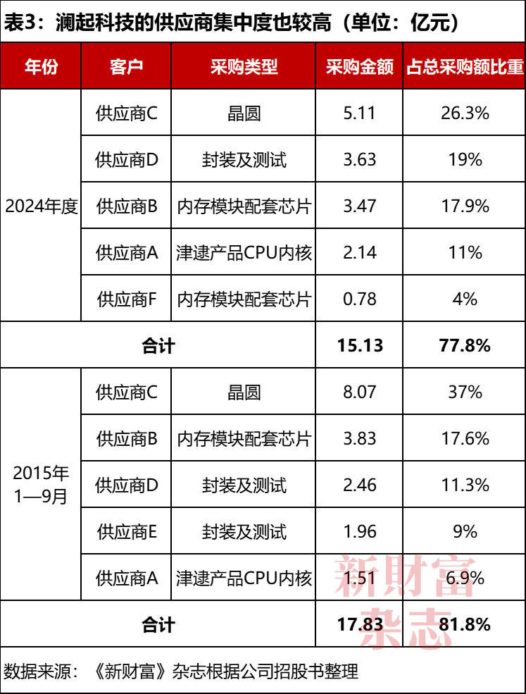 随着销售收入大增,澜起科技对供应商C的晶圆代工需求越来越多,2025年前三季度,采购额超过8亿元,比2024年全年采购额要多近3亿元,采购额占比也从26.3%上升到37%。