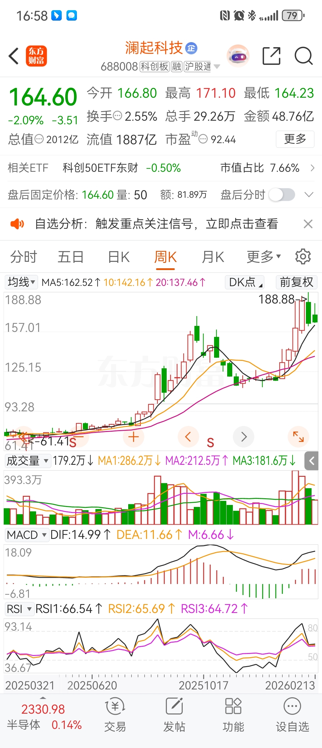 $澜起科技(SH688008)$ 虽然日k看着不怎样,但是周k还是颜值在线的,明年见!