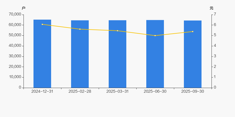 截至2025年9月30日,公司最新A股总股本为105.9亿股,其中流通股本为86.21亿股。户均持有流通股数量由上期的13.3万股上升至13.39万股,户均流通市值72.05万元。
