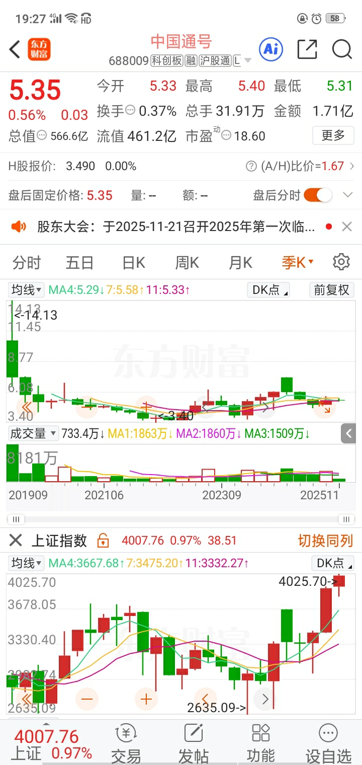 $中国通号(SH688009)$ 中国通号是在上证指数n年后跨越6124点之前的低价潜力人气指标股。证指数站稳4000点之上,关键是要拥有真实交易的可传承的股权!