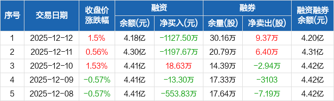 中国通号:融资净偿还1127.5万元,融资余额4.18亿元(12-12)