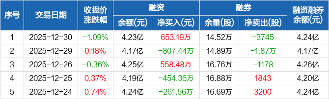中国通号:融资净买入653.19万元,融资余额4.23亿元(12-30)