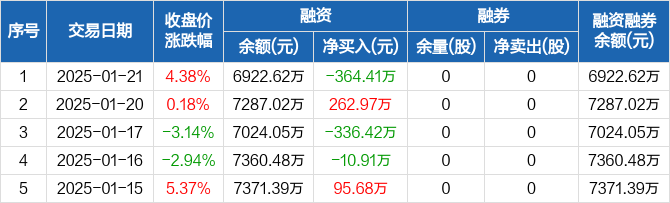 福光股份:融资余额6922.62万元,创近一年新低(01-21)