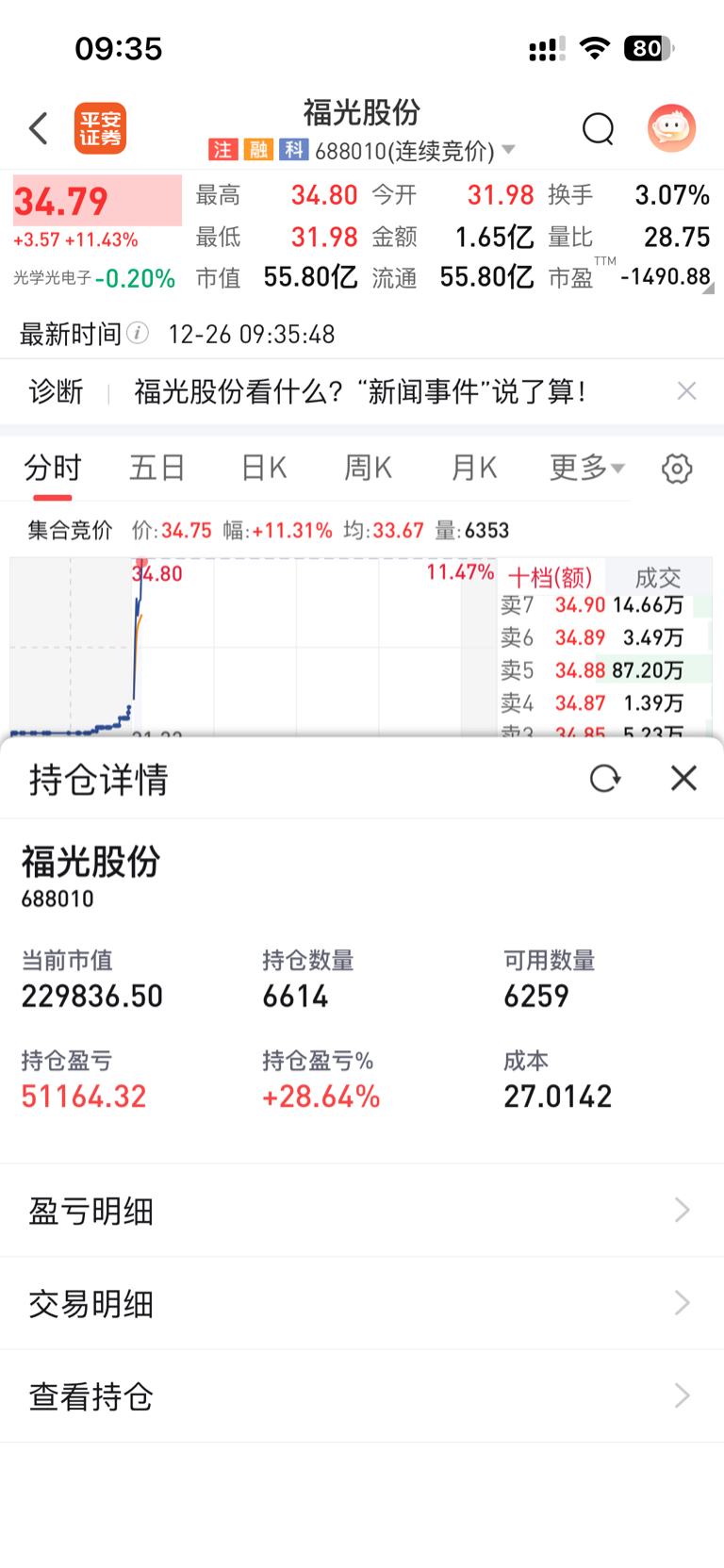 $福光股份(SH688010)$ 留了底仓,不到36不清