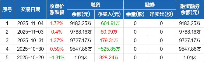 新光光电:融资净偿还604.91万元,融资余额9183.25万元(11-04)