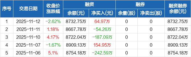 新光光电:融资净买入64.97万元,融资余额8732.75万元(11-12)