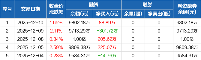 新光光电:融资净买入88.89万元,融资余额9802.18万元(12-10)