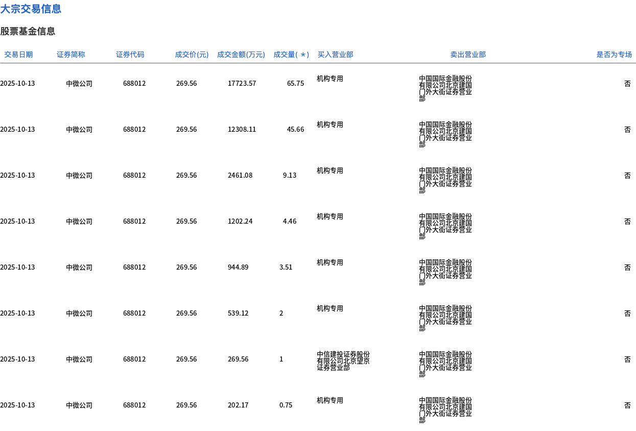 中微公司今日大宗交易折价成交132.26万股,成交额3.57亿元
