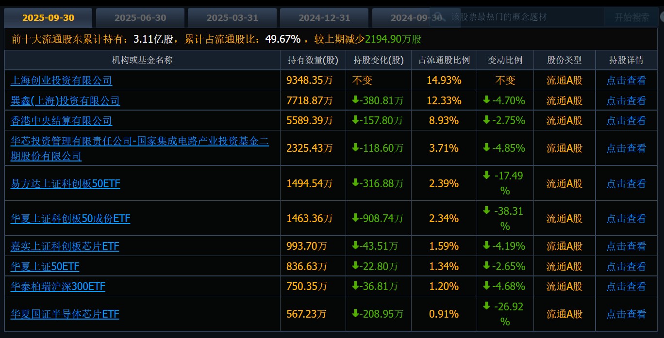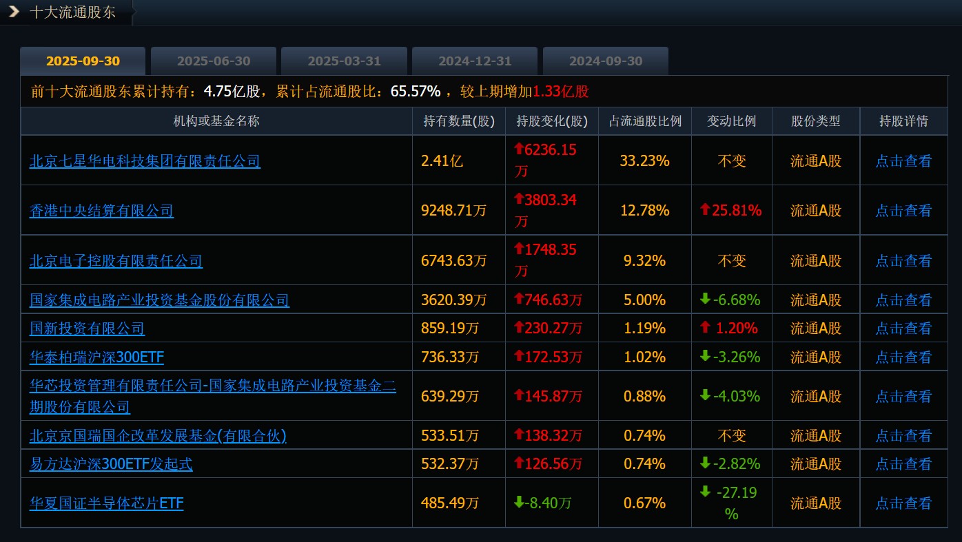 对比下华创与中微三季报披露的前十大股东的增减持情况,高下立判!