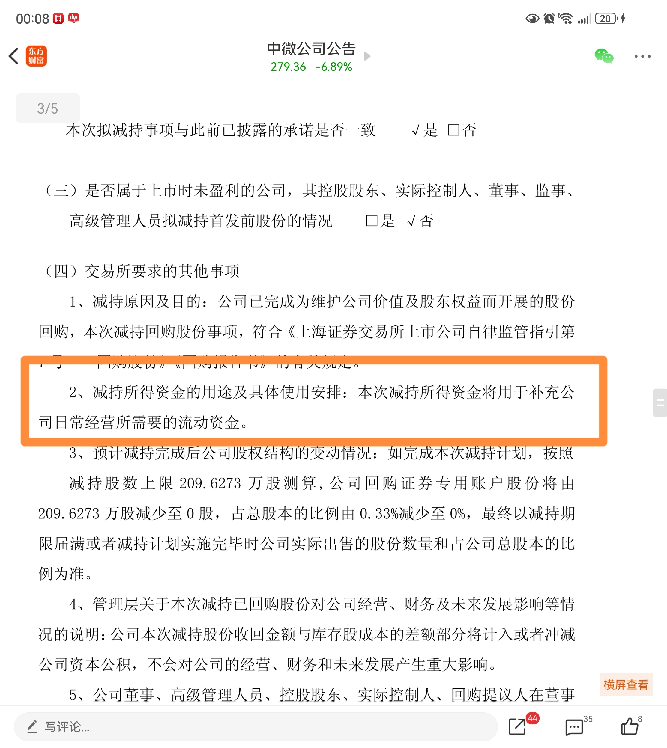 $中微公司(SH688012)$ 减持所得资金用于补充公司流动资金,利好