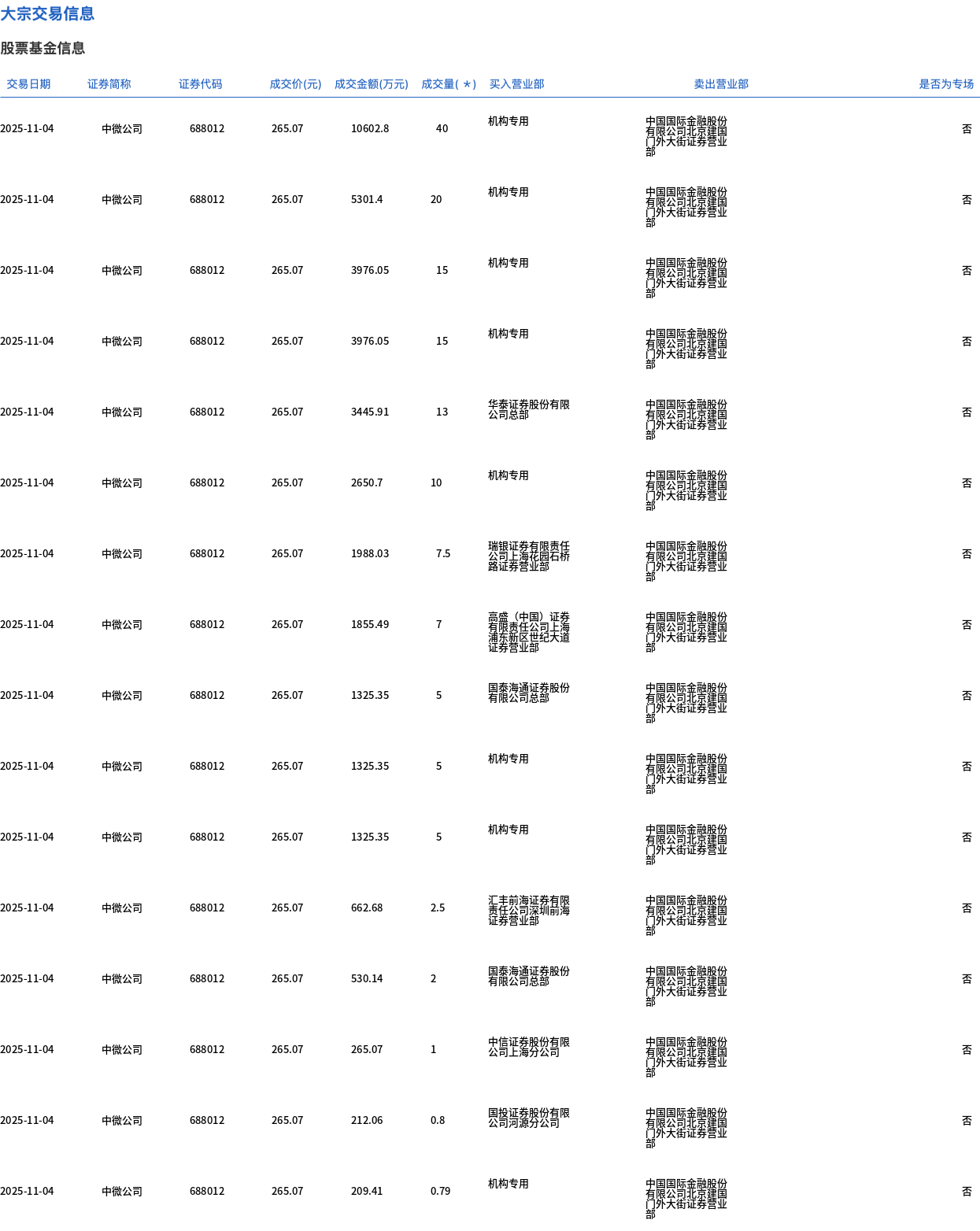 中微公司今日大宗交易折价成交149.59万股,成交额3.97亿元
