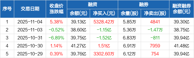 中微公司:融资净买入5328.42万元,融资余额39.13亿元(11-04)