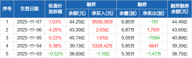 中微公司:融资余额44.25亿元,创历史新高(11-07)