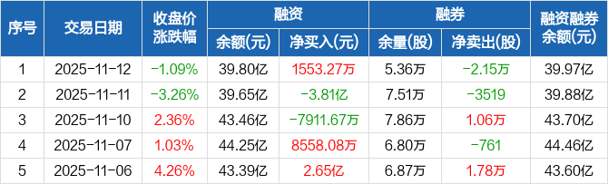 中微公司:融资净买入1553.27万元,融资余额39.8亿元(11-12)