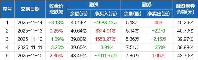 中微公司:融资净偿还4988.43万元,融资余额40.14亿元(11-14)