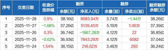 中微公司:融资净买入8983.94万元,融资余额38.16亿元(11-28)