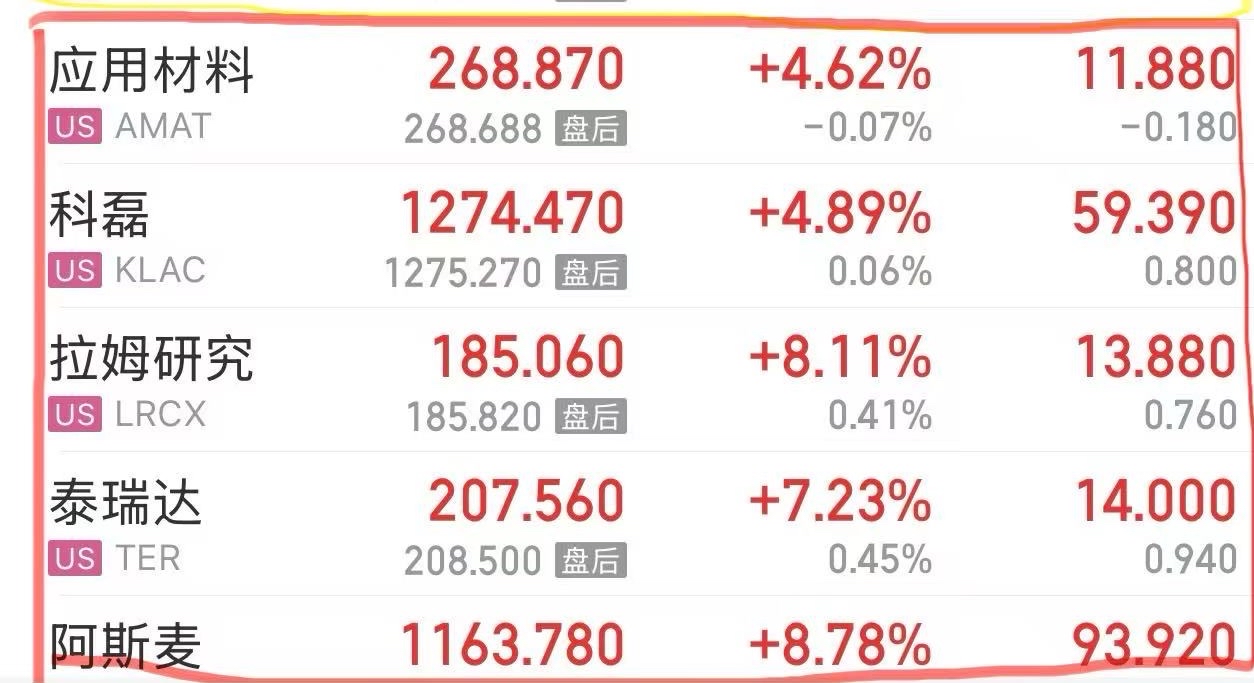 $中芯国际(SH688981)$ $北方华创(SZ002371)$ $中微公司(SH688012)$ 昨晚美股存储芯片产业链全面逆势爆涨。其中美光、存储芯片扩产设备股阿斯麦拉姆研究泰瑞达、包括代工厂台积电股价同时创历史新高!