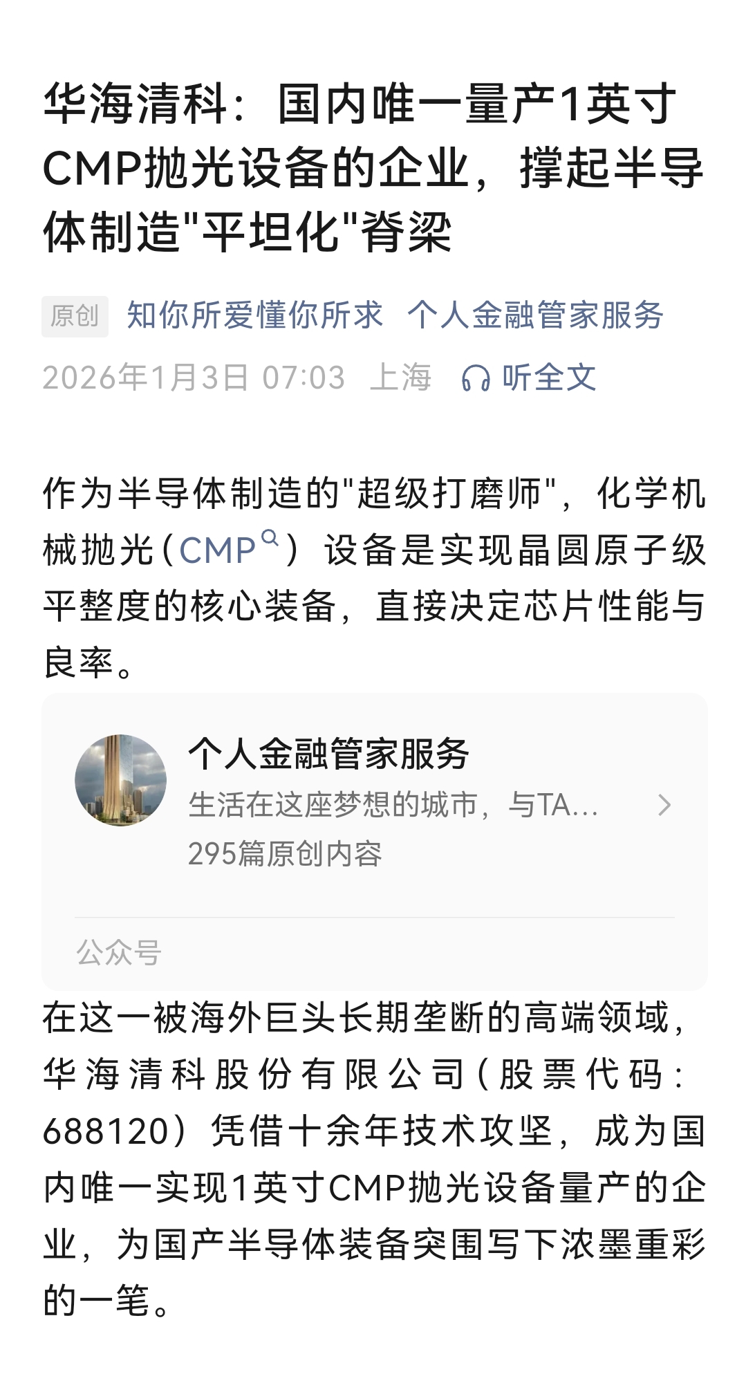 这杭州的小公司有啥唯一的技术吗?吹的最响的12寸华海清科早就商用占领国内市场了这