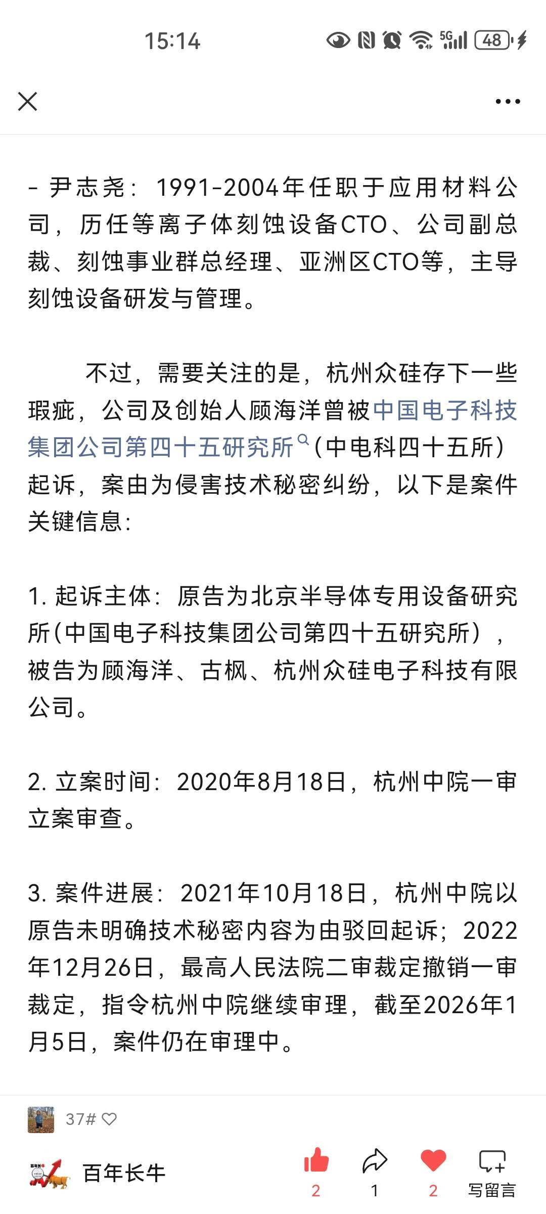 恭喜坚守的朋友们,中微值得更大的涨幅。不过众硅这个未决诉讼,会不会有风险?