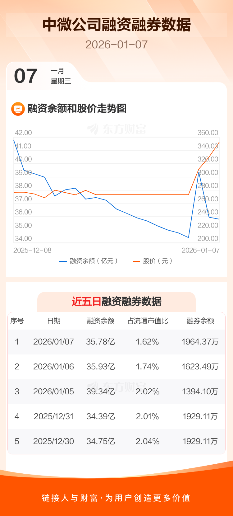 交易所最新数据显示,中微公司于2026年1月7日获融资买入7.89亿元,融资偿还8.04亿元,当日融资净偿还1500.12万元。目前,该股融资余额35.78亿,占流通市值比例为1.62%。