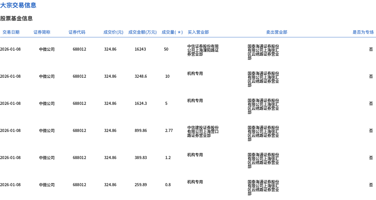 中微公司今日大宗交易折价成交69.77万股,成交额2.27亿元