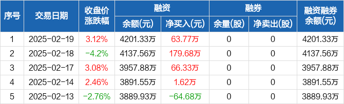 天臣医疗:融资余额4201.33万元,创近一年新高(02-19)