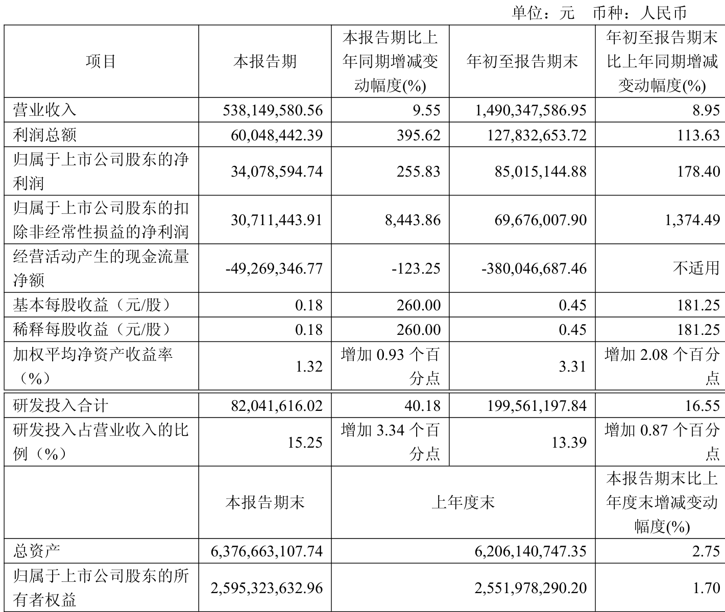 负债重大变化方面,截至2025年三季度末,公司合同负债较上年末增加48.77%,占公司总资产比重上升6.05个百分点;应付票据及应付账款较上年末减少8.68%,占公司总资产比重下降3.64个百分点;应付职工薪酬较上年末减少62.2%,占公司总资产比重下降1.36个百分点;其他流动负债较上年末减少1.32%,占公司总资产比重下降0.13个百分点。
