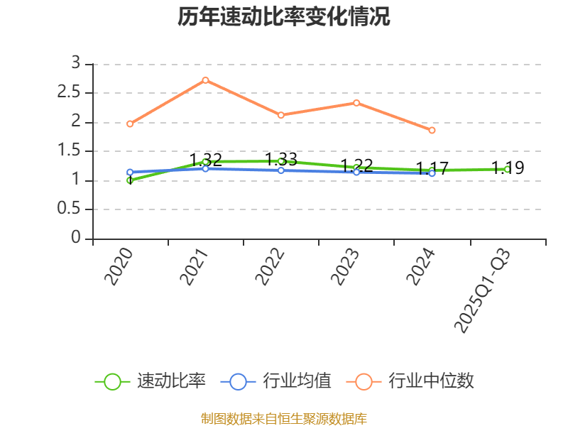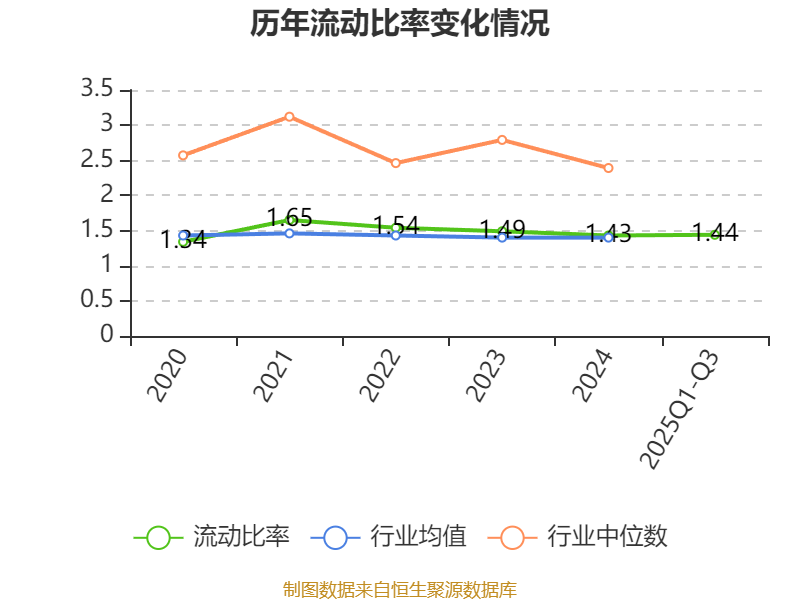 2025年前三季度,公司流动比率为1.44,速动比率为1.19。