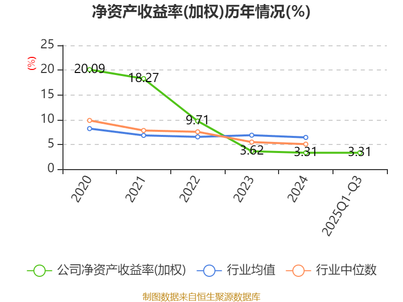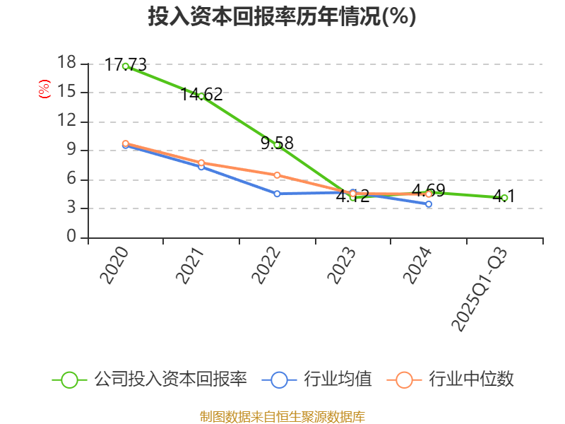 盈利能力方面, 2025年前三季度公司加权平均净资产收益率为3.31%,同比上升2.08个百分点。公司2025年前三季度投入资本回报率为4.1%,较上年同期上升2.09个百分点。