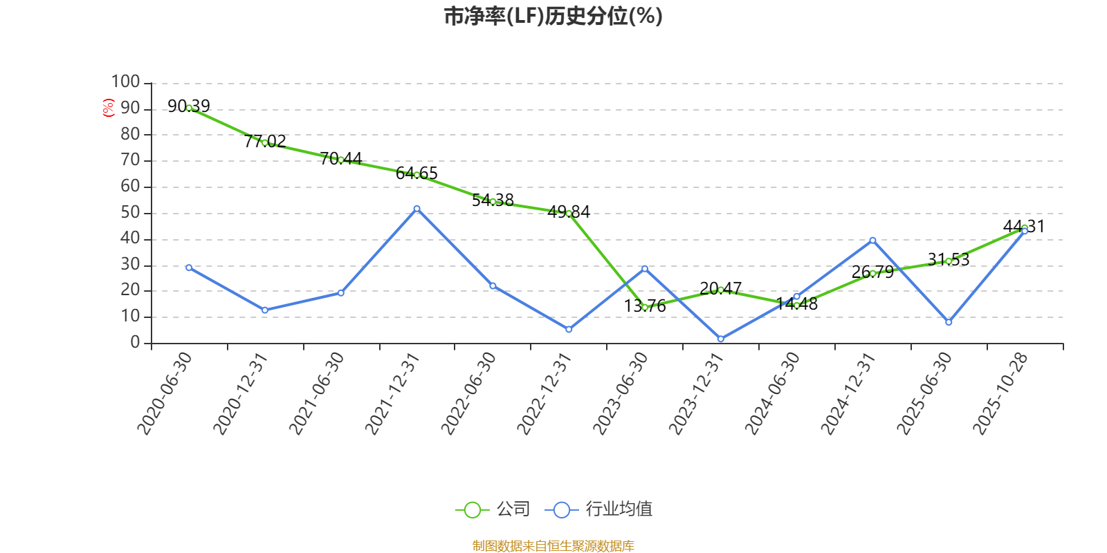市盈率、市净率为负时,不显示当期分位数,会导致折线图中断。