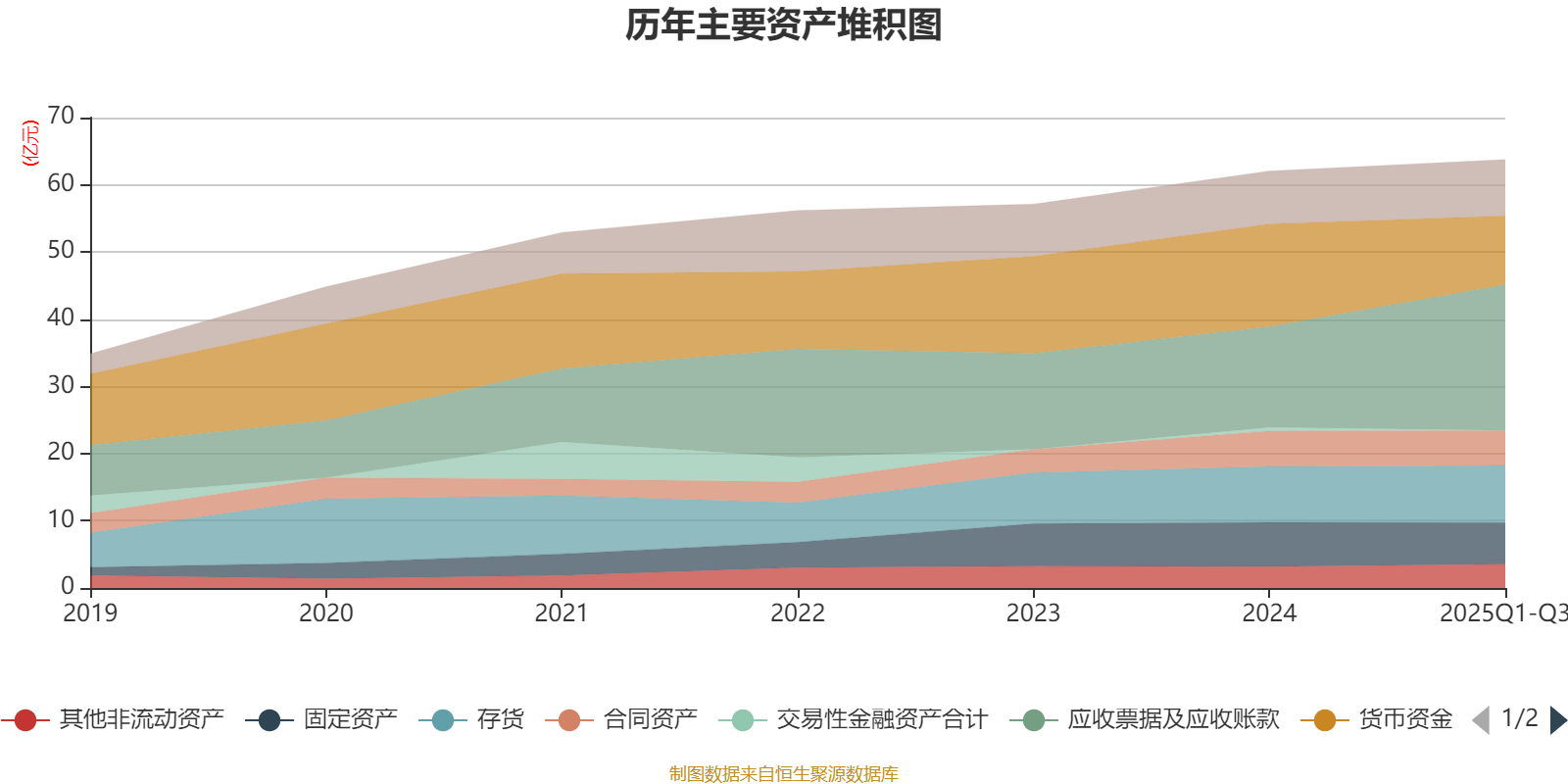 资产重大变化方面,截至2025年三季度末,公司应收票据及应收账款较上年末增加44.5%,占公司总资产比重上升9.82个百分点;货币资金较上年末减少33.04%,占公司总资产比重下降8.58个百分点;预付款项较上年末增加185.4%,占公司总资产比重上升1.09个百分点;固定资产较上年末减少5.92%,占公司总资产比重下降0.9个百分点。