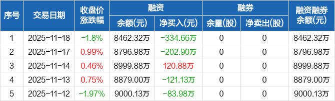 交控科技:融资净偿还334.66万元,融资余额8462.32万元(11-18)