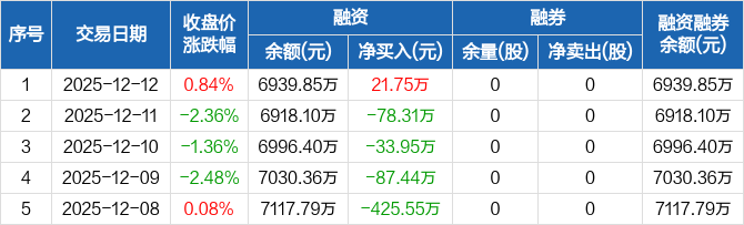 交控科技:融资净买入21.75万元,融资余额6939.85万元(12-12)