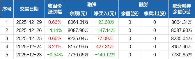交控科技:融资净偿还23.6万元,融资余额8064.31万元(12-29)