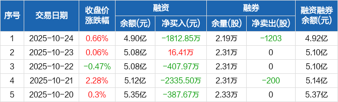 心脉医疗:融资净偿还1812.85万元,融资余额4.9亿元(10-24)