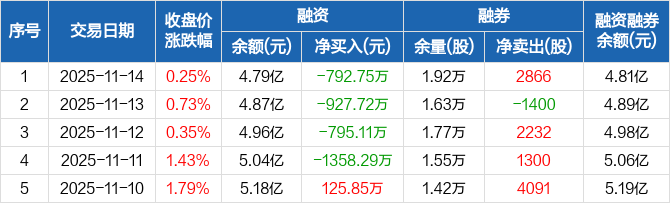 心脉医疗融资融券信息显示,2025年11月14日融资净偿还792.75万元;融资余额4.79亿元,较前一日下降1.63%。