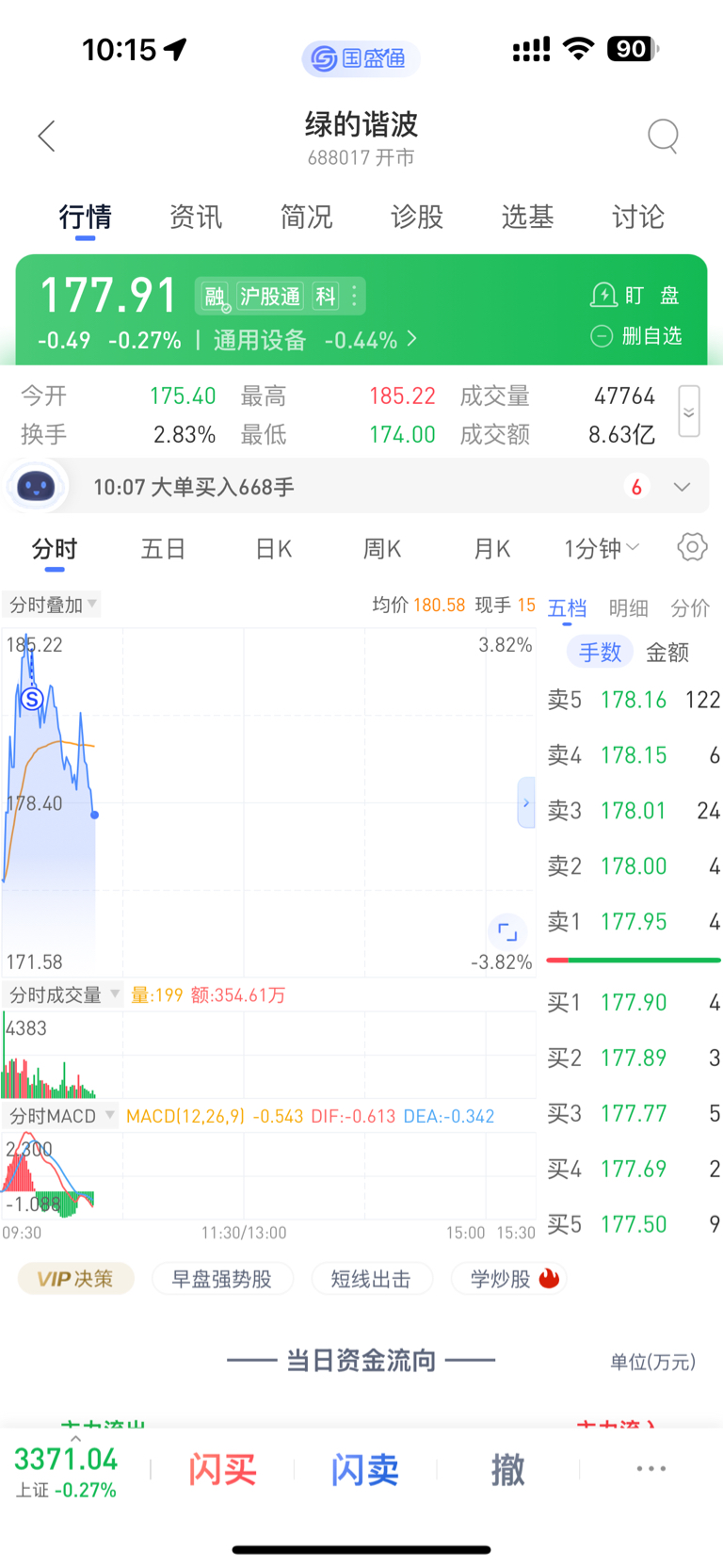 $绿的谐波(SH688017)$ 兄弟们,我先撤出来观望一下。。等趋势回来我一定回来追