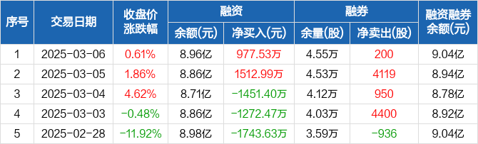 绿的谐波:融资净买入977.53万元,融资余额8.96亿元(03-06)