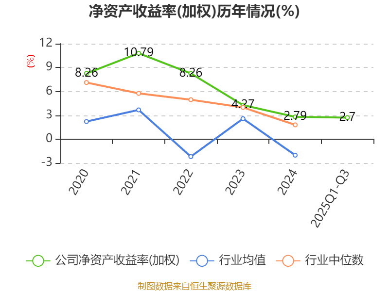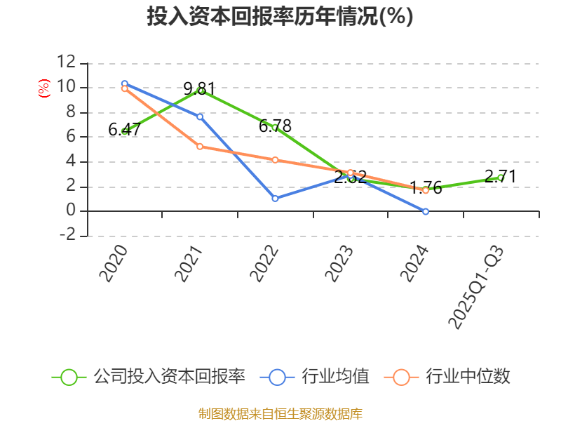 盈利能力方面, 2025年前三季度公司加权平均净资产收益率为2.7%,同比下降0.21个百分点。公司2025年前三季度投入资本回报率为2.71%,较上年同期上升0.4个百分点。