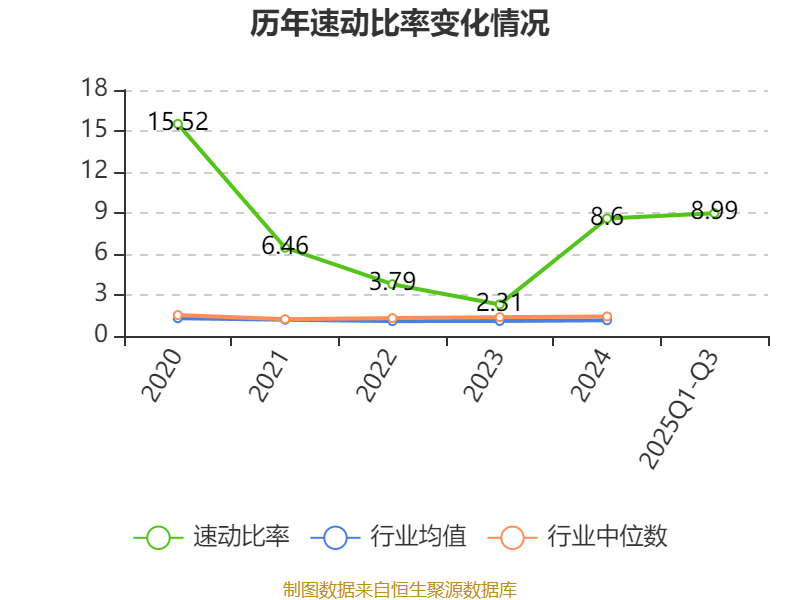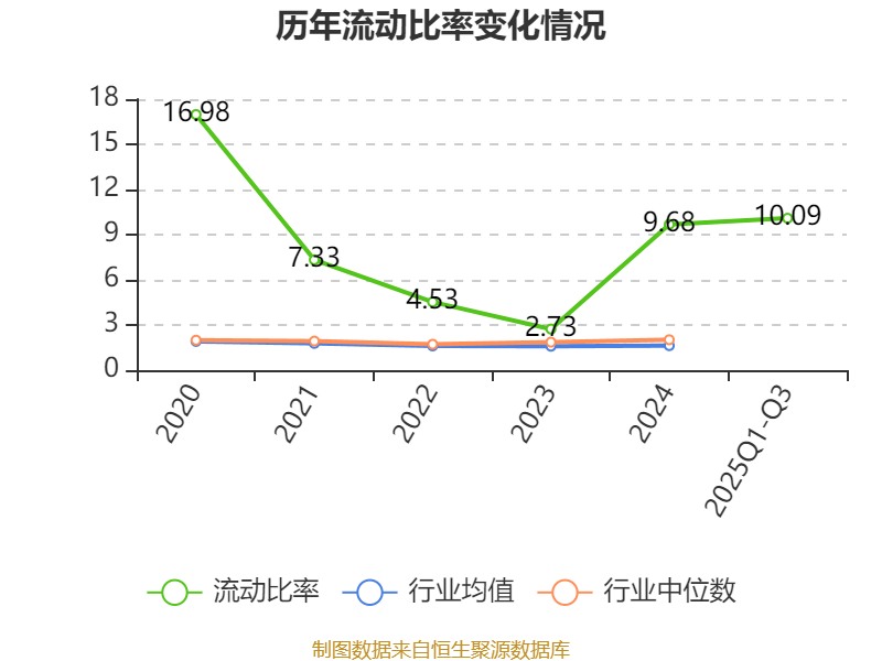 2025年前三季度,公司流动比率为10.09,速动比率为8.99。