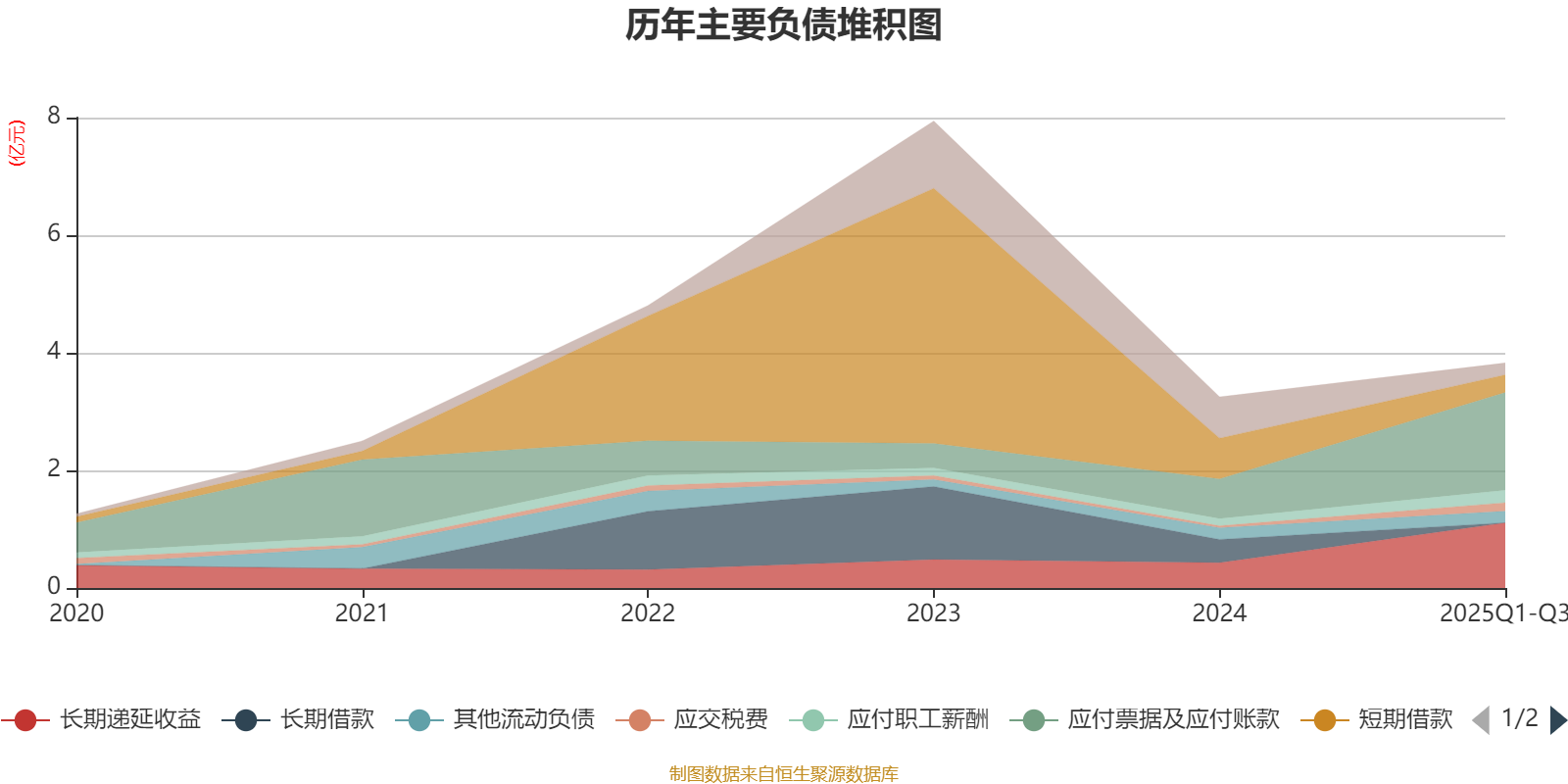负债重大变化方面,截至2025年三季度末,公司应付票据及应付账款较上年末增加146.85%,占公司总资产比重上升2.48个百分点;长期递延收益较上年末增加158.93%,占公司总资产比重上升1.71个百分点;短期借款较上年末减少56.63%,占公司总资产比重下降1.07个百分点;长期借款较上年末减少100%,占公司总资产比重下降1.06个百分点。